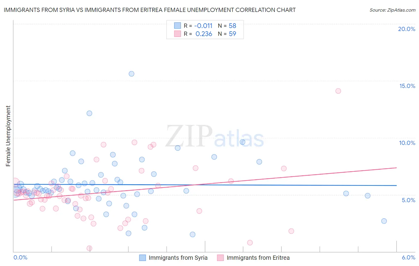 Immigrants from Syria vs Immigrants from Eritrea Female Unemployment Correlation Chart