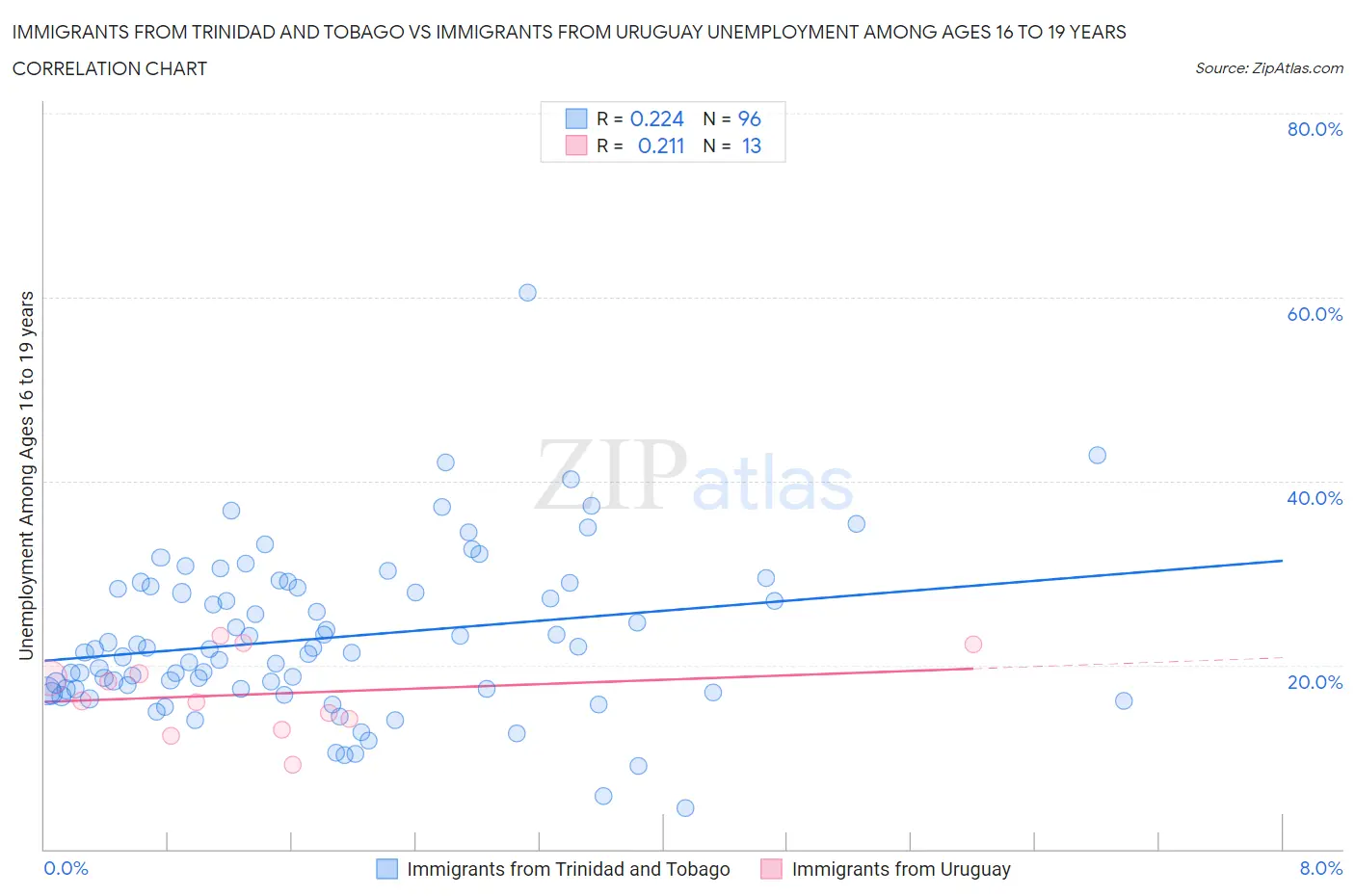 Immigrants from Trinidad and Tobago vs Immigrants from Uruguay Unemployment Among Ages 16 to 19 years Correlation Chart
