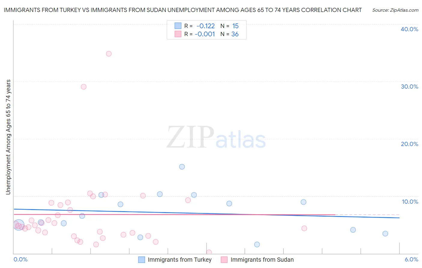 Immigrants from Turkey vs Immigrants from Sudan Unemployment Among Ages 65 to 74 years Correlation Chart