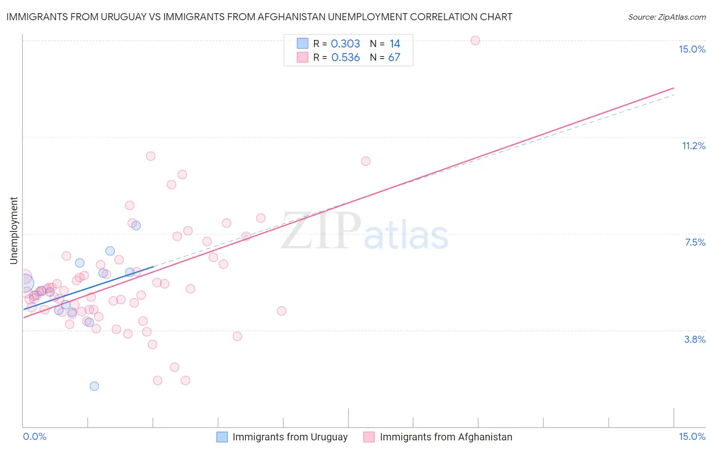 Immigrants from Uruguay vs Immigrants from Afghanistan Unemployment Correlation Chart
