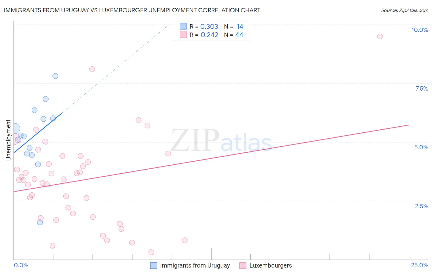 Immigrants from Uruguay vs Luxembourger Unemployment Correlation Chart