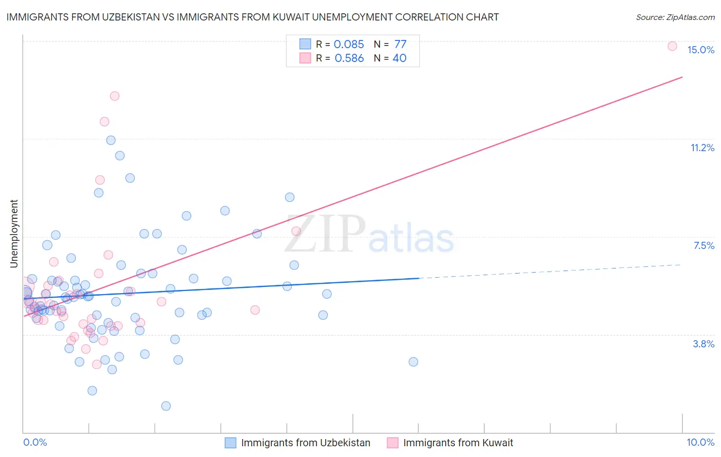 Immigrants from Uzbekistan vs Immigrants from Kuwait Unemployment Correlation Chart