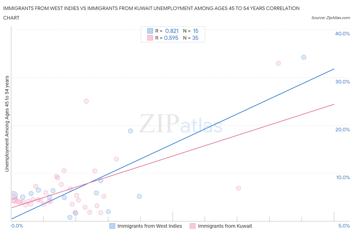 Immigrants from West Indies vs Immigrants from Kuwait Unemployment Among Ages 45 to 54 years Correlation Chart