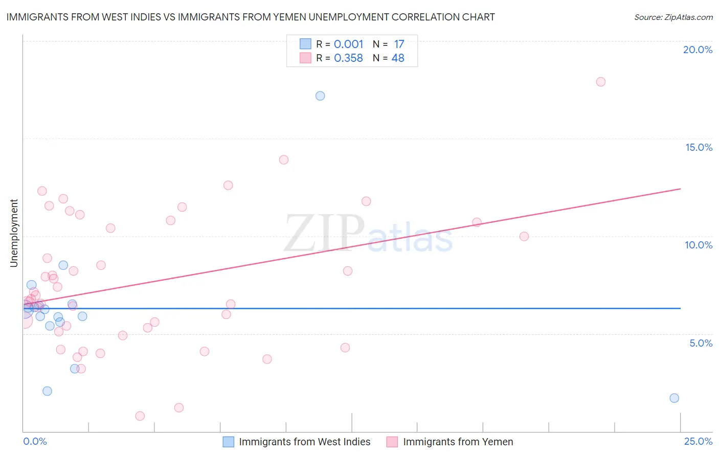 Immigrants from West Indies vs Immigrants from Yemen Unemployment Correlation Chart