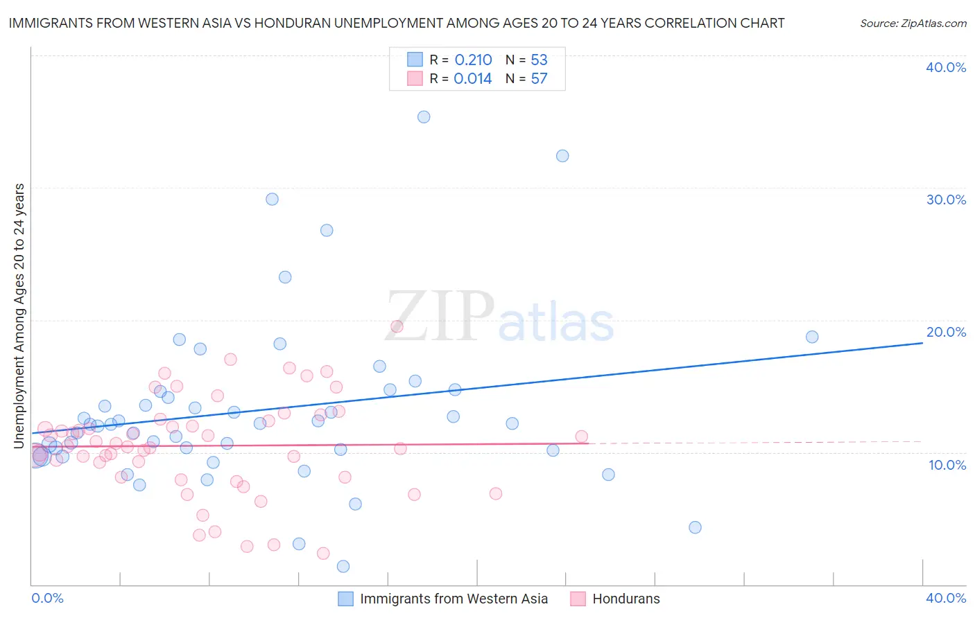 Immigrants from Western Asia vs Honduran Unemployment Among Ages 20 to 24 years