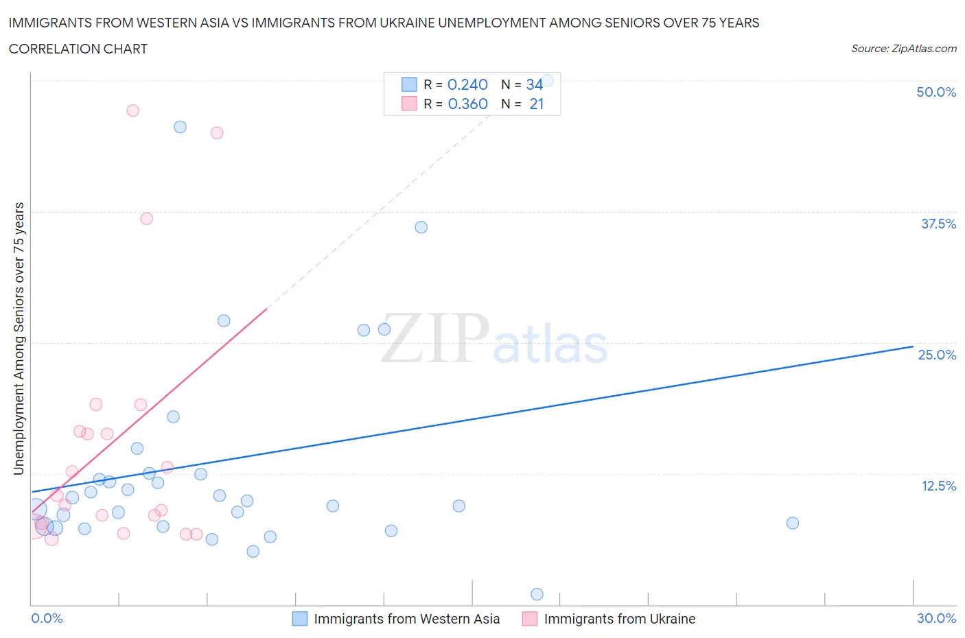 Immigrants from Western Asia vs Immigrants from Ukraine Unemployment Among Seniors over 75 years Correlation Chart