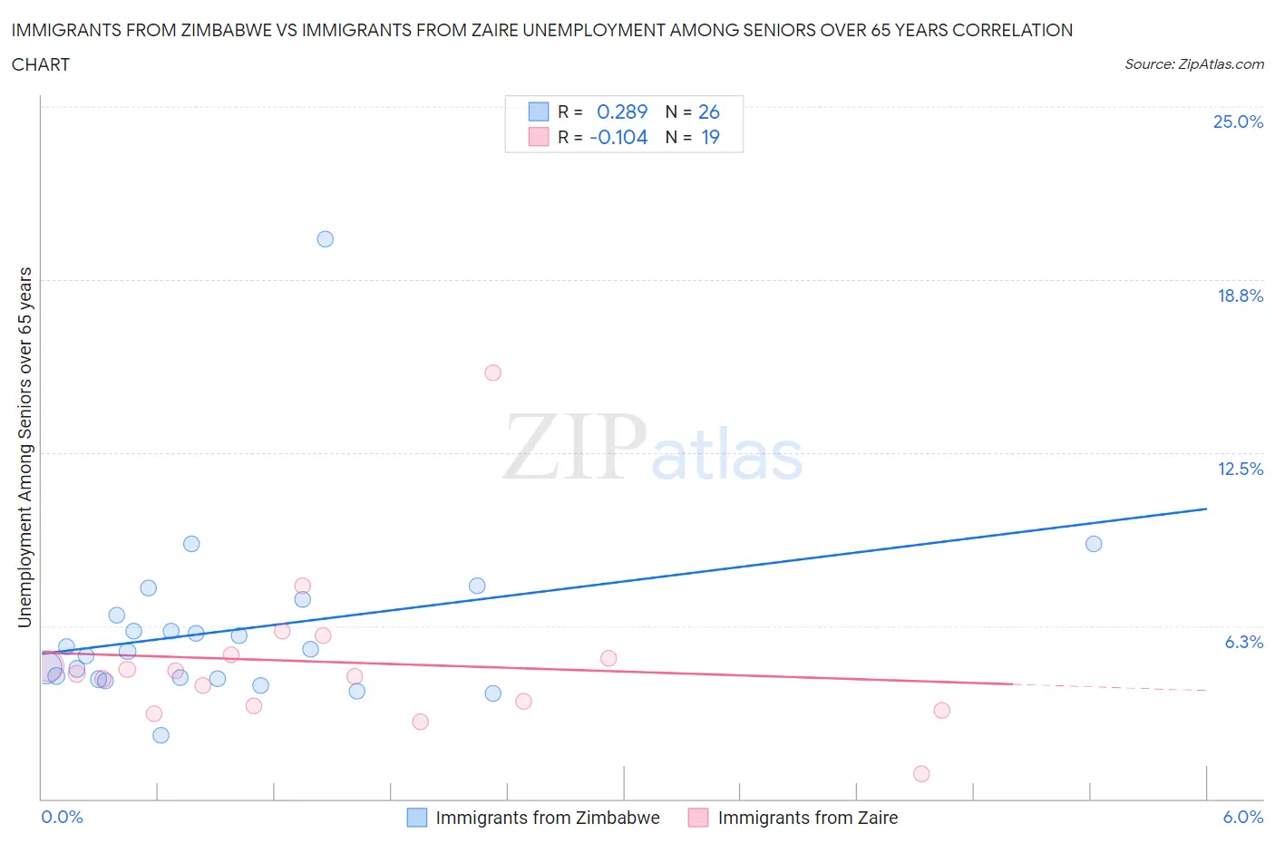 Immigrants from Zimbabwe vs Immigrants from Zaire Unemployment Among Seniors over 65 years Correlation Chart