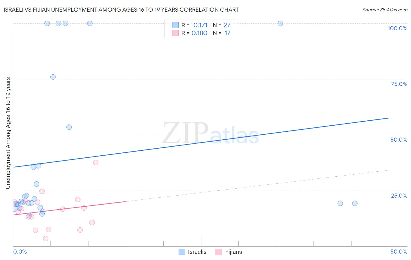Israeli vs Fijian Unemployment Among Ages 16 to 19 years