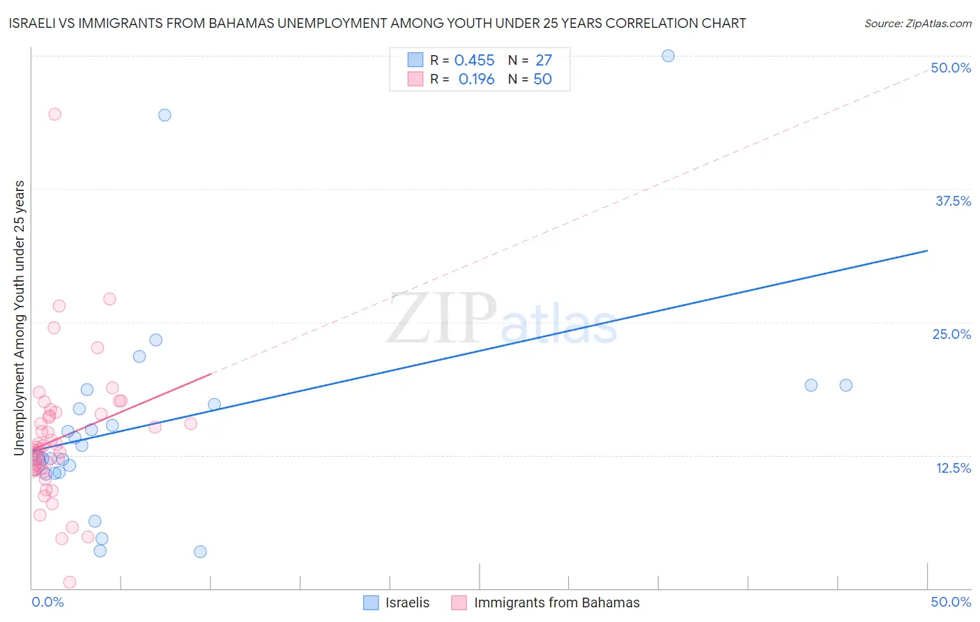 Israeli vs Immigrants from Bahamas Unemployment Among Youth under 25 years Correlation Chart