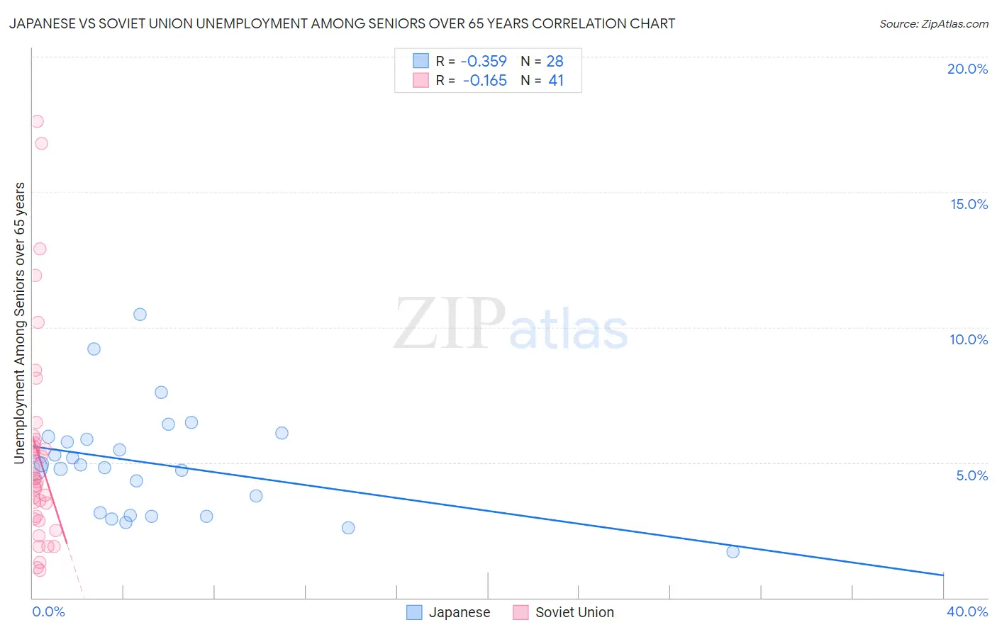 Japanese vs Soviet Union Unemployment Among Seniors over 65 years Correlation Chart