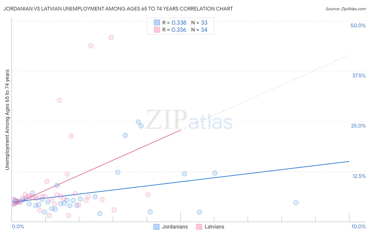 Jordanian vs Latvian Unemployment Among Ages 65 to 74 years Correlation Chart