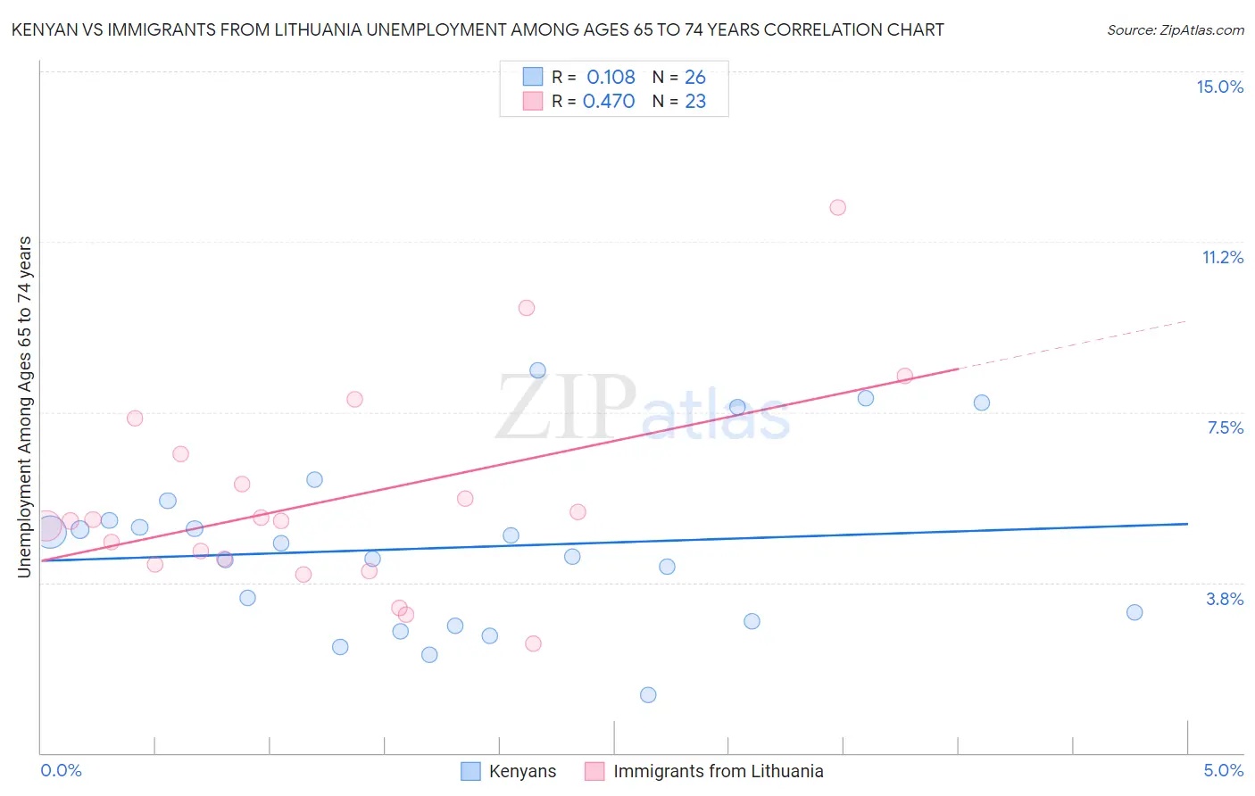 Kenyan vs Immigrants from Lithuania Unemployment Among Ages 65 to 74 years Correlation Chart
