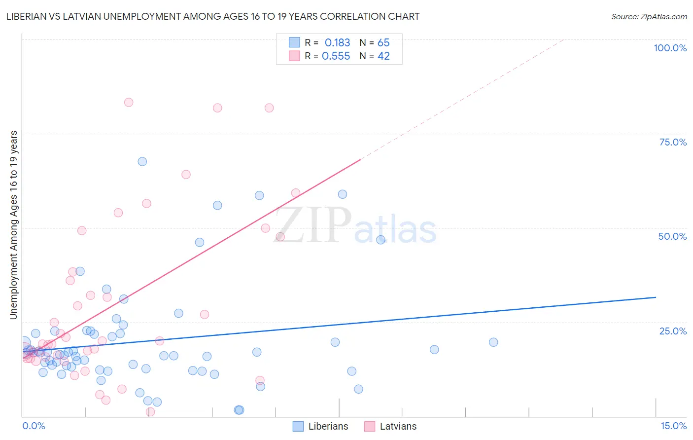 Liberian vs Latvian Unemployment Among Ages 16 to 19 years Correlation Chart