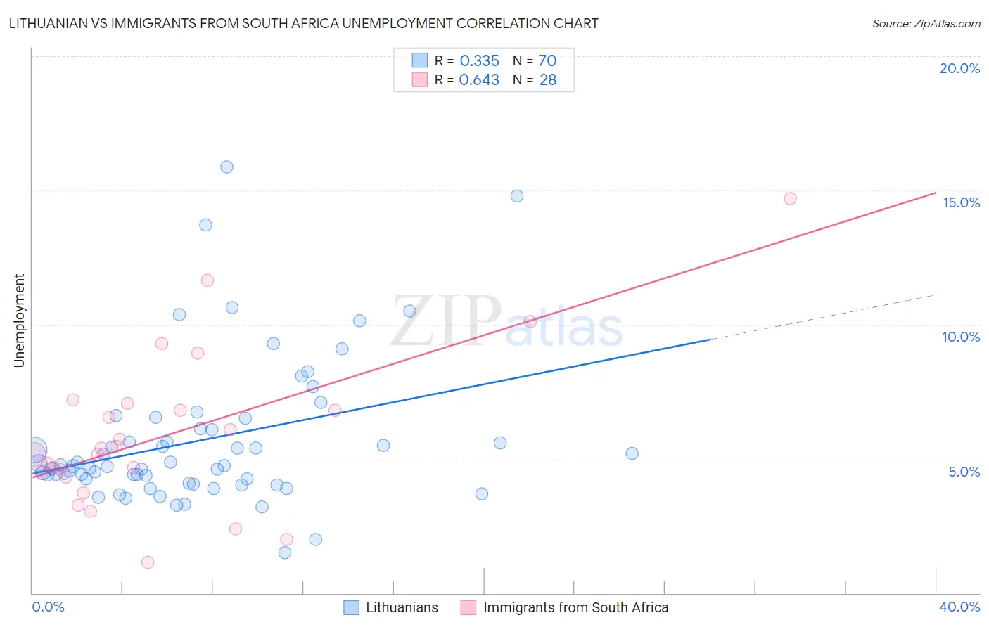 Lithuanian vs Immigrants from South Africa Unemployment Correlation Chart