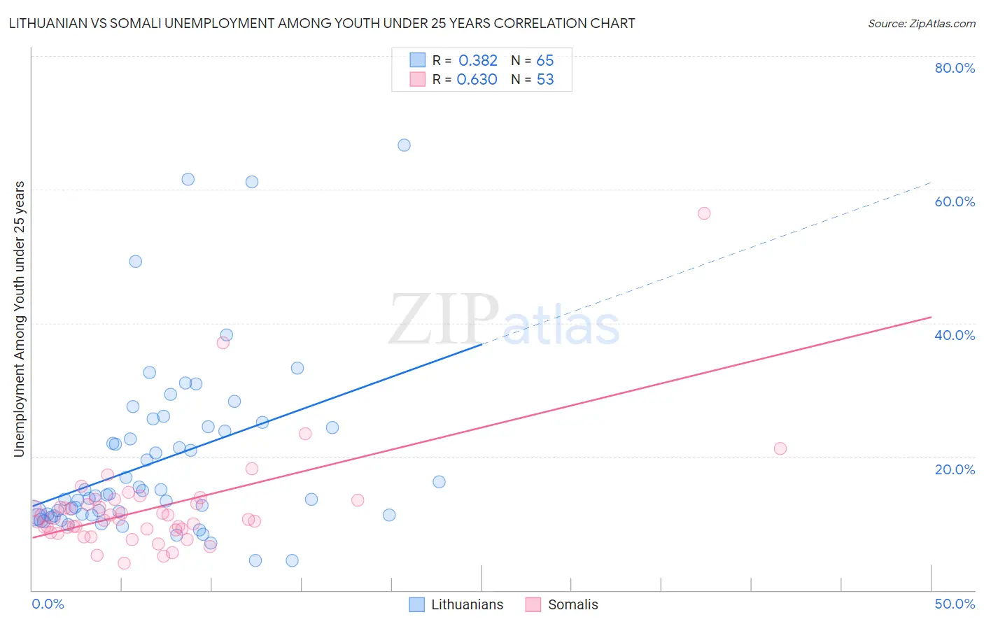 Lithuanian vs Somali Unemployment Among Youth under 25 years Correlation Chart