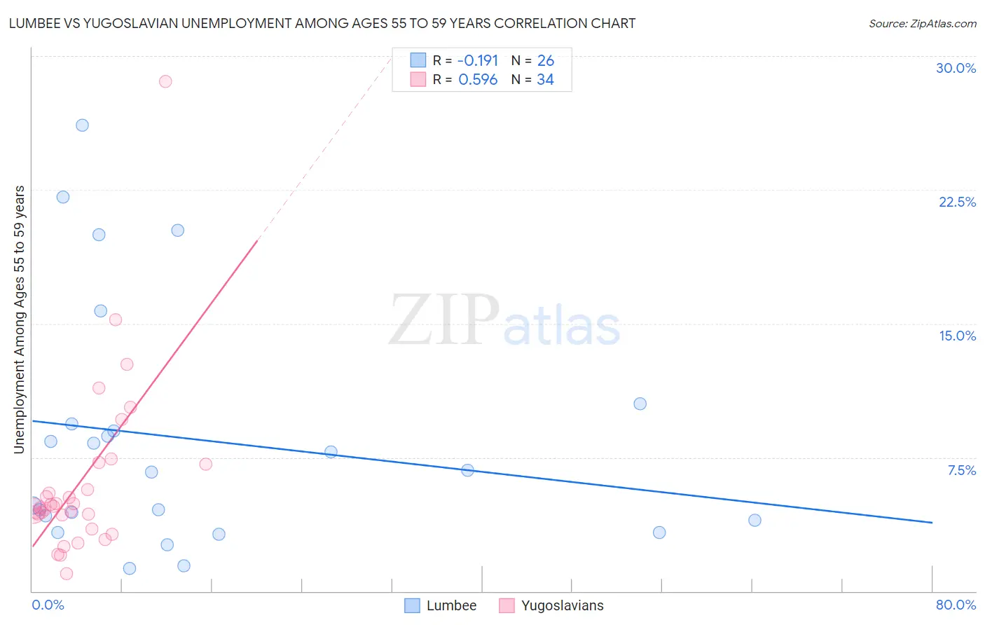 Lumbee vs Yugoslavian Unemployment Among Ages 55 to 59 years