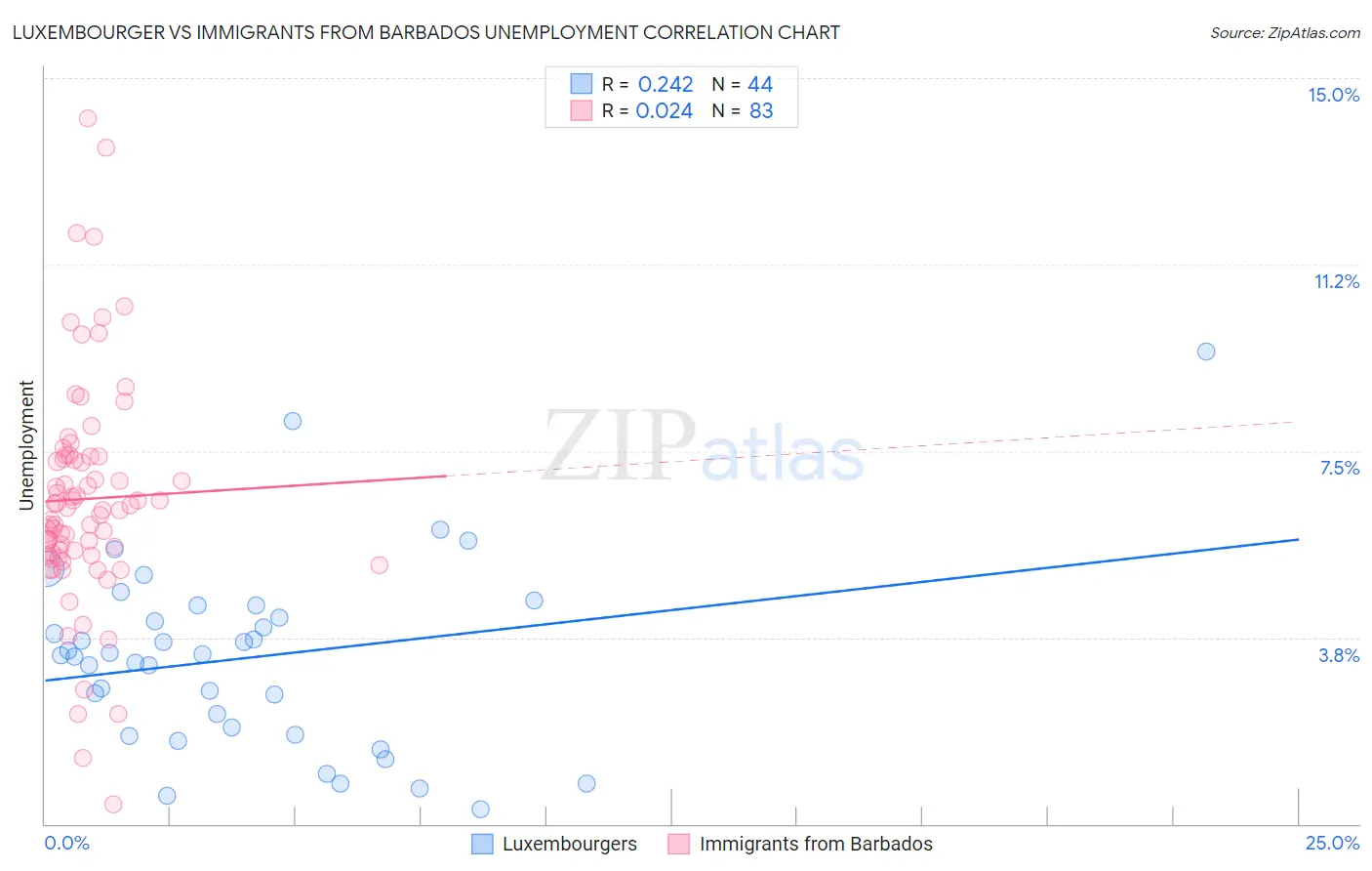 Luxembourger vs Immigrants from Barbados Unemployment Correlation Chart