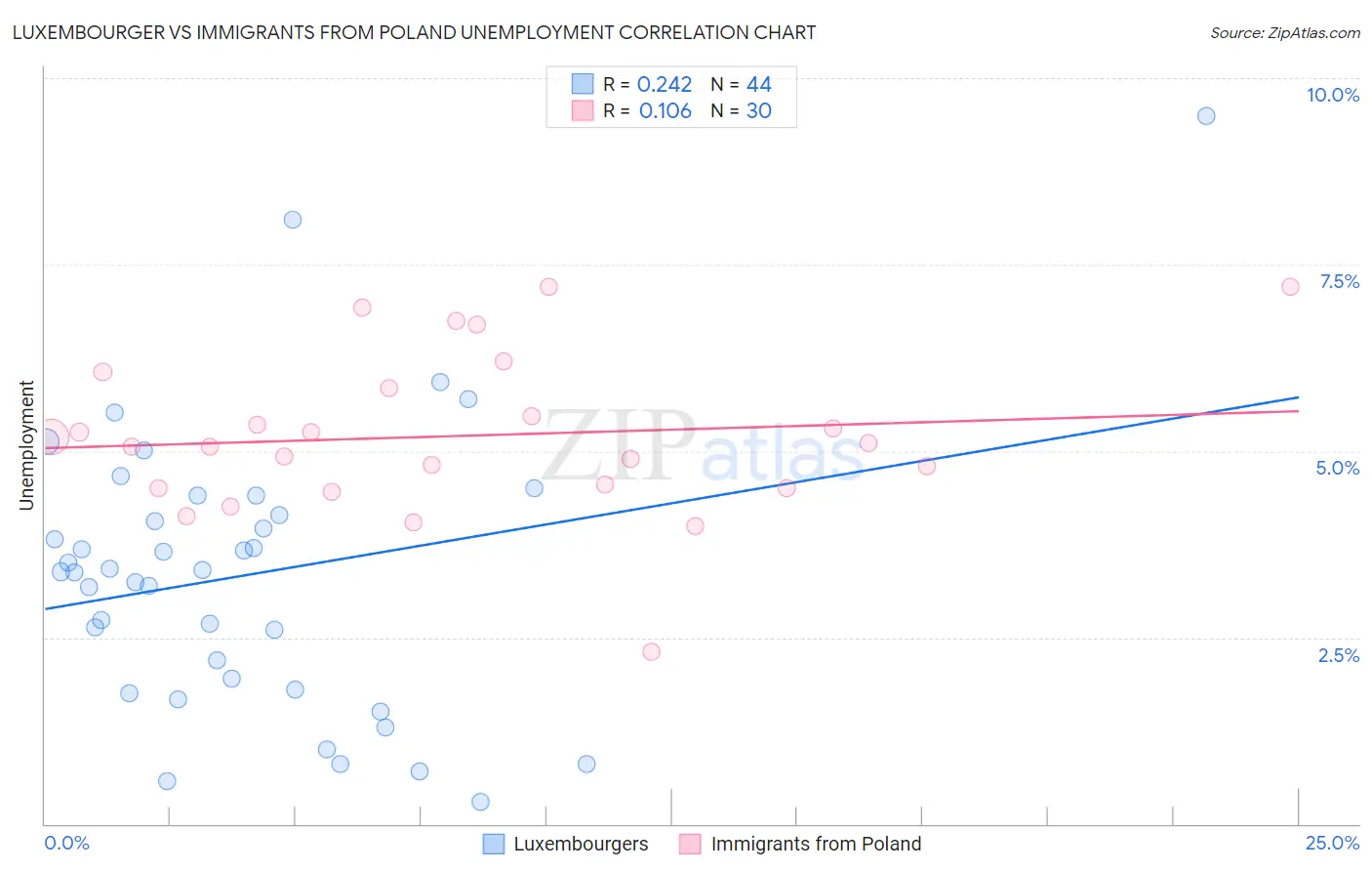 Luxembourger vs Immigrants from Poland Unemployment Correlation Chart