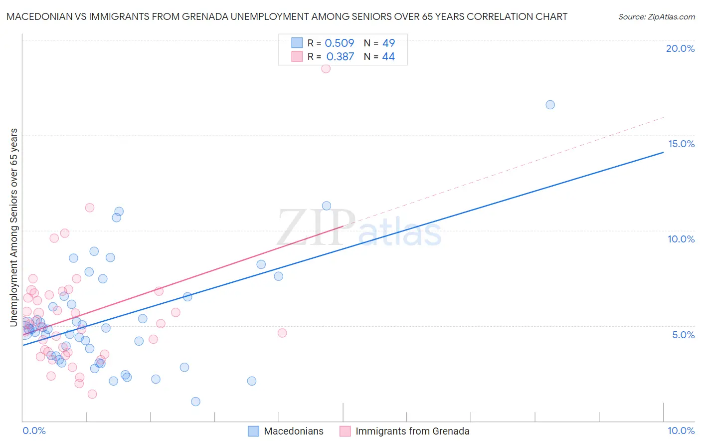 Macedonian vs Immigrants from Grenada Unemployment Among Seniors over 65 years Correlation Chart