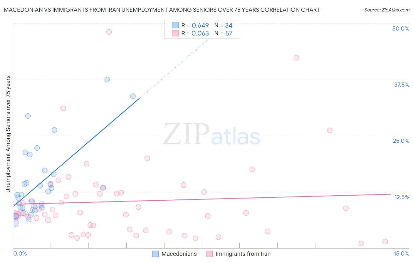 Macedonian vs Immigrants from Iran Unemployment Among Seniors over 75 years Correlation Chart