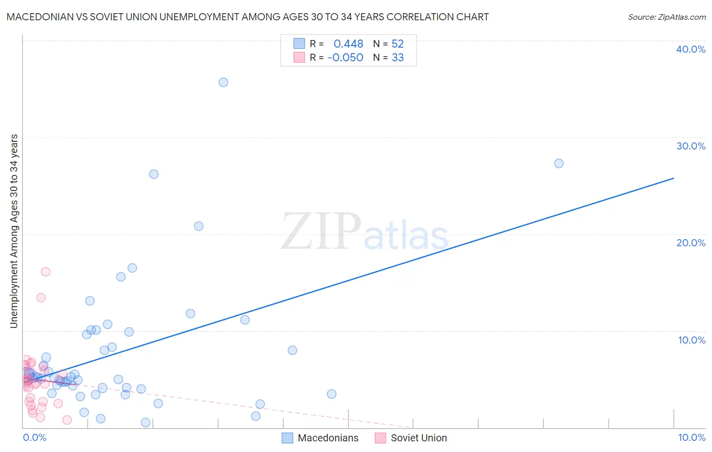 Macedonian vs Soviet Union Unemployment Among Ages 30 to 34 years
