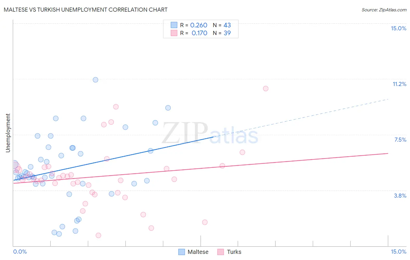 The statistical analysis conducted on geographies consisting of 126,436,055 people shows a weak positive correlation between the proportion of Maltese and unemployment in the United States with a correlation coefficient (R) of 0.260 and weighted average of 5.0%. Similarly, the statistical analysis conducted on geographies consisting of 271,755,353 people shows a poor positive correlation between the proportion of Turks and unemployment in the United States with a correlation coefficient (R) of 0.170 and weighted average of 4.9%, a difference of 1.9%.