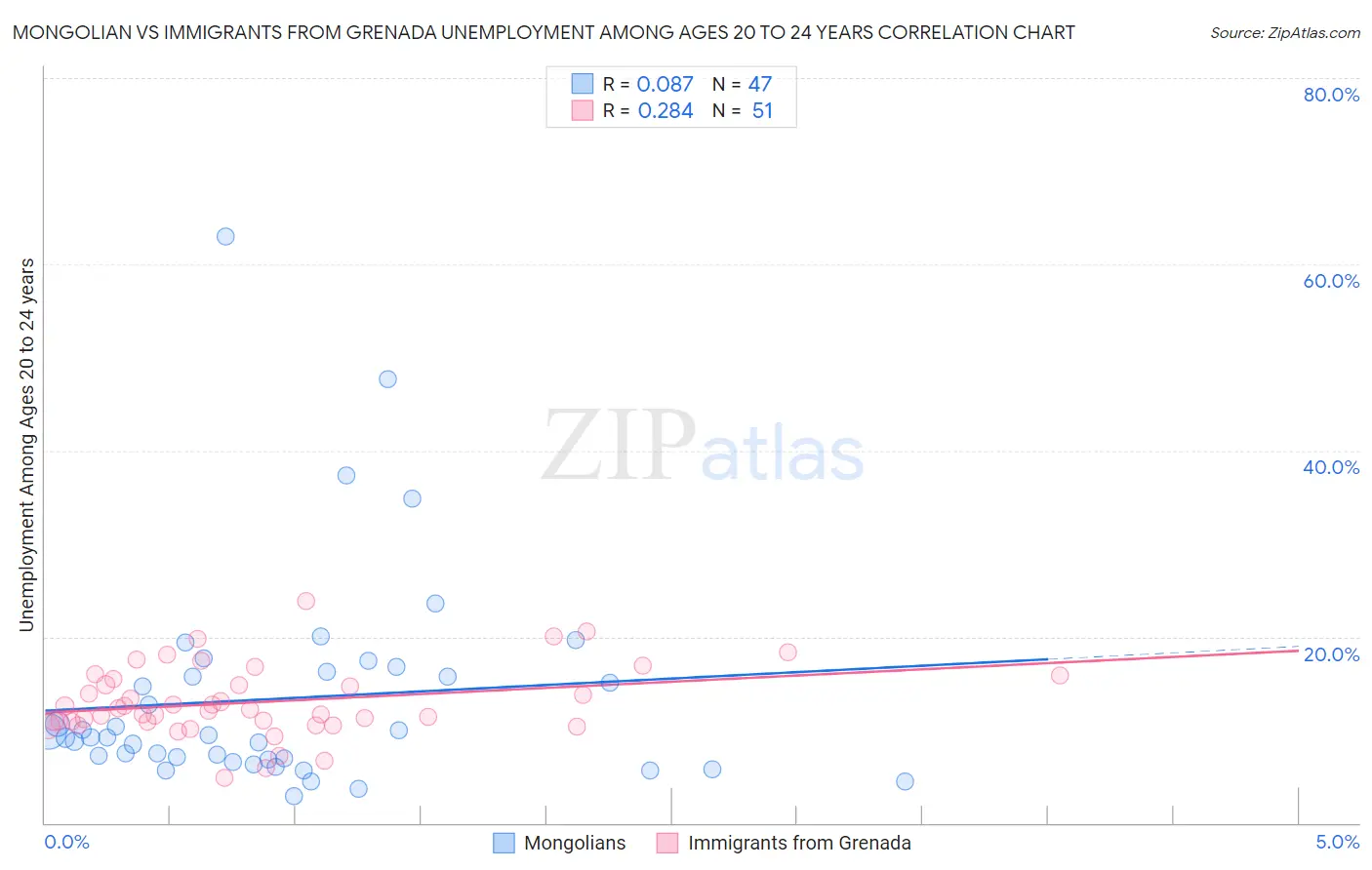 Mongolian vs Immigrants from Grenada Unemployment Among Ages 20 to 24 years Correlation Chart