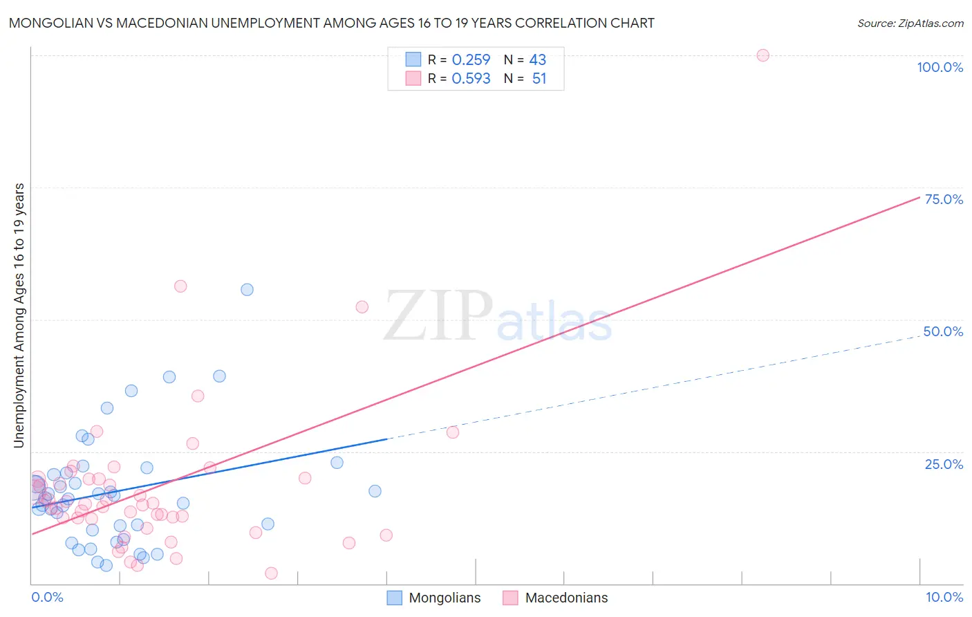 Mongolian vs Macedonian Unemployment Among Ages 16 to 19 years Correlation Chart