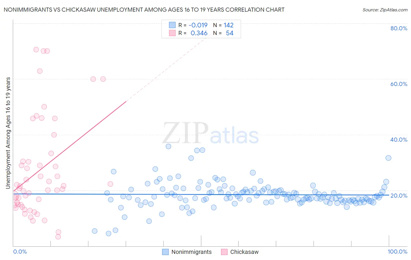 Nonimmigrants vs Chickasaw Unemployment Among Ages 16 to 19 years