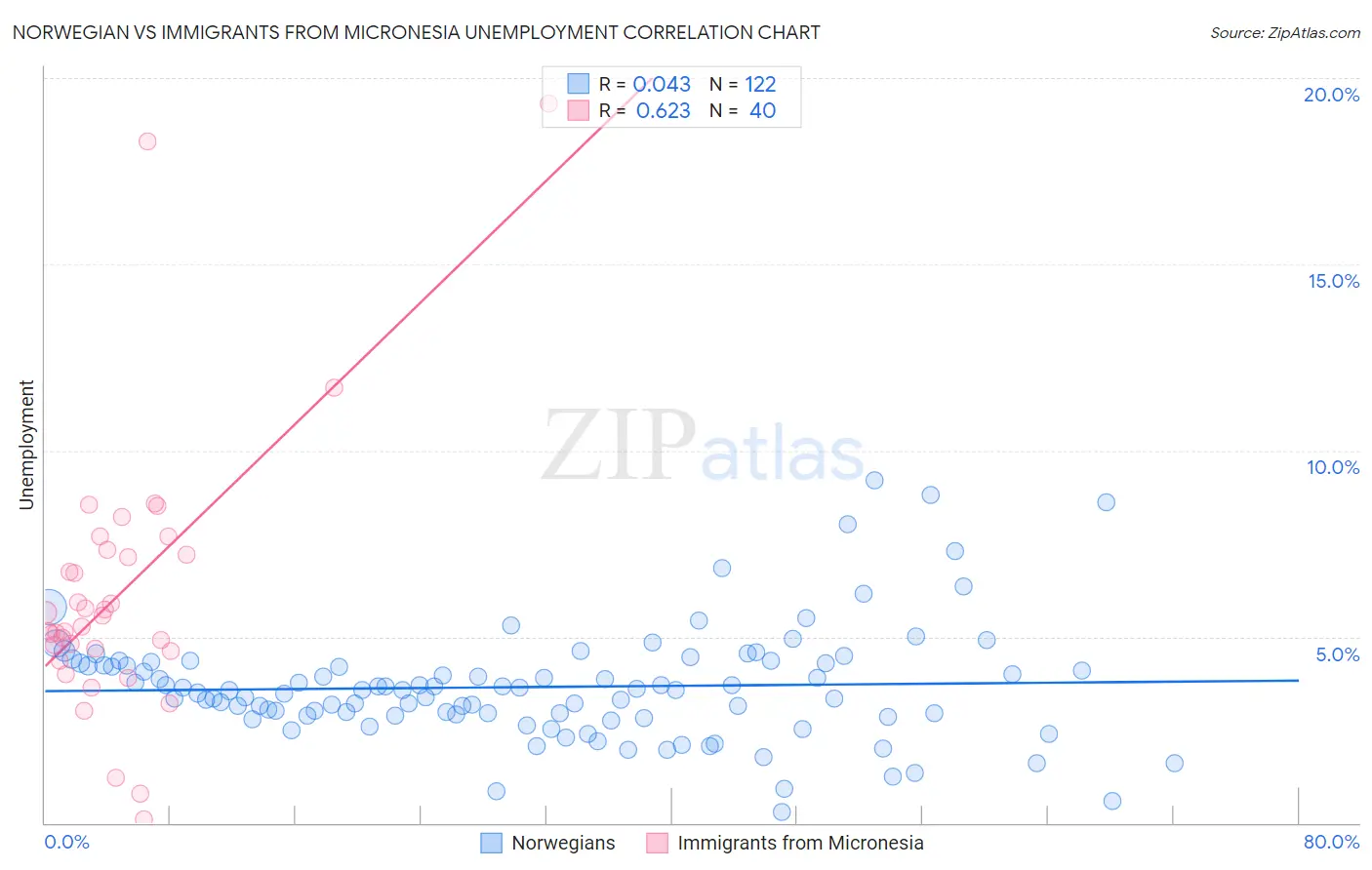 Norwegian vs Immigrants from Micronesia Unemployment Correlation Chart