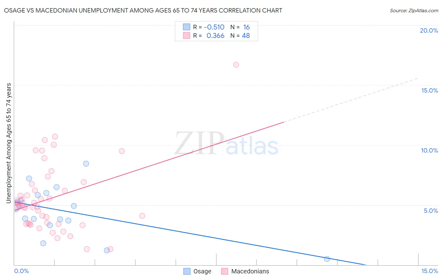 Osage vs Macedonian Unemployment Among Ages 65 to 74 years Correlation Chart