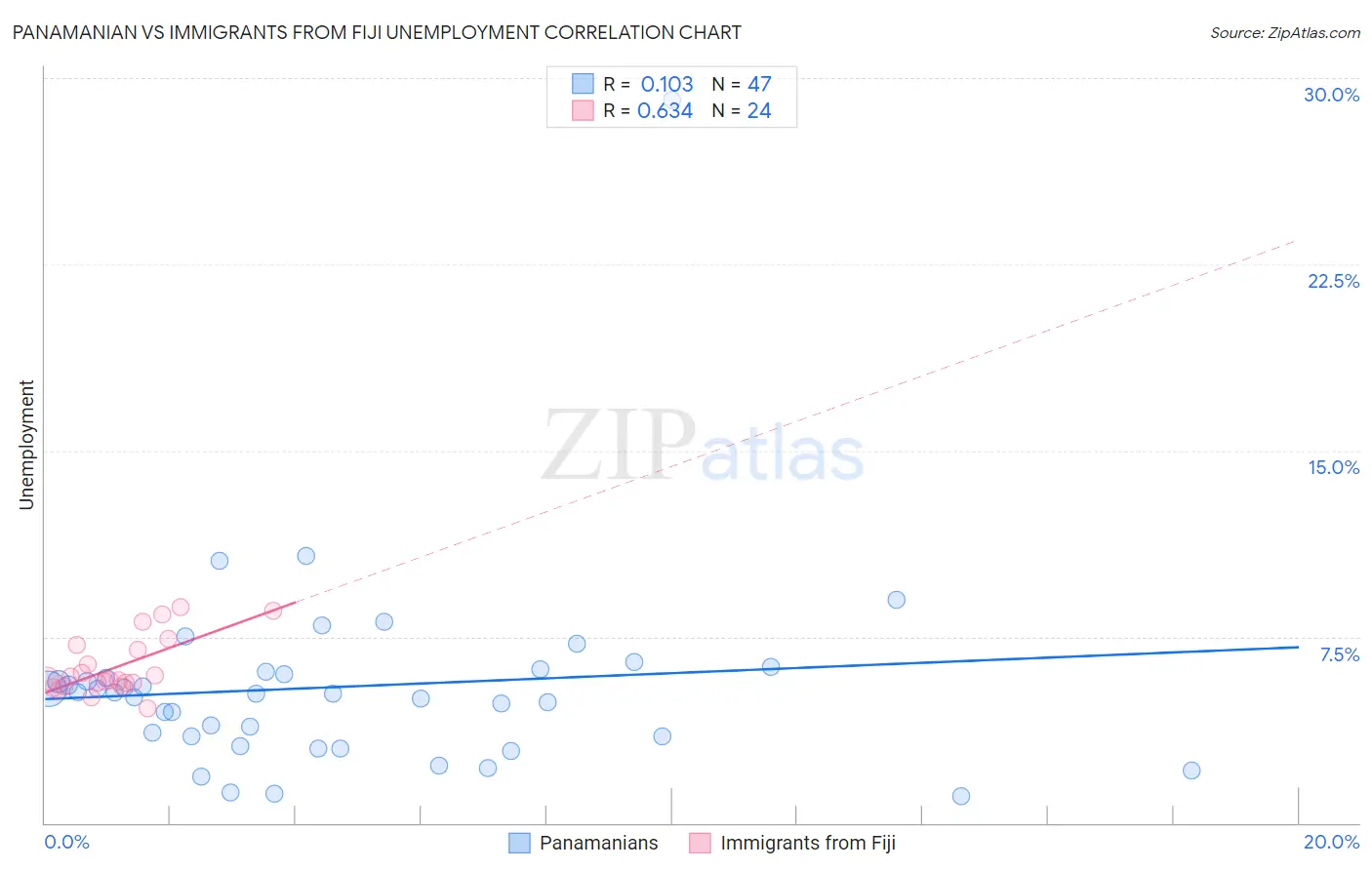 Panamanian vs Immigrants from Fiji Unemployment Correlation Chart