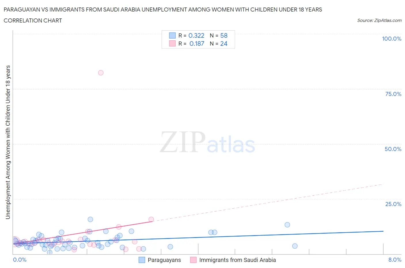 Paraguayan vs Immigrants from Saudi Arabia Unemployment Among Women with Children Under 18 years Correlation Chart