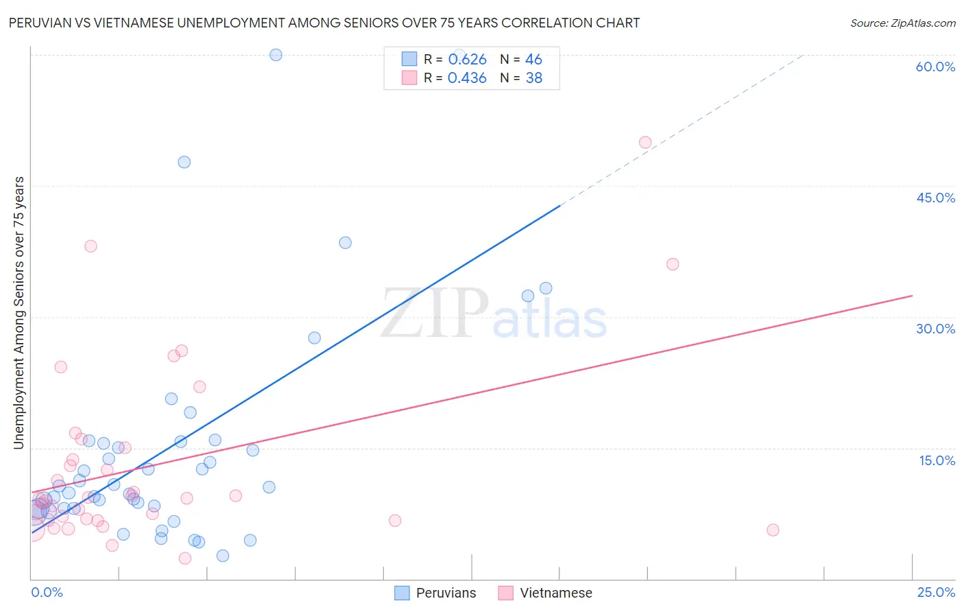 Peruvian vs Vietnamese Unemployment Among Seniors over 75 years Correlation Chart