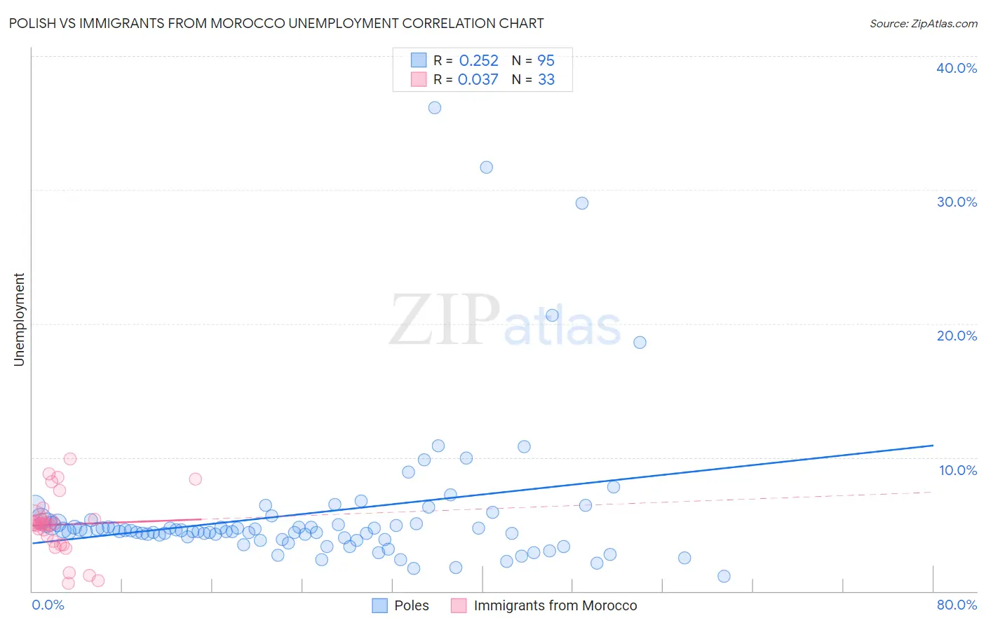 Polish vs Immigrants from Morocco Unemployment Correlation Chart