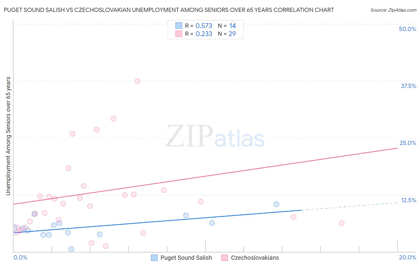 Puget Sound Salish vs Czechoslovakian Unemployment Among Seniors over 65 years Correlation Chart