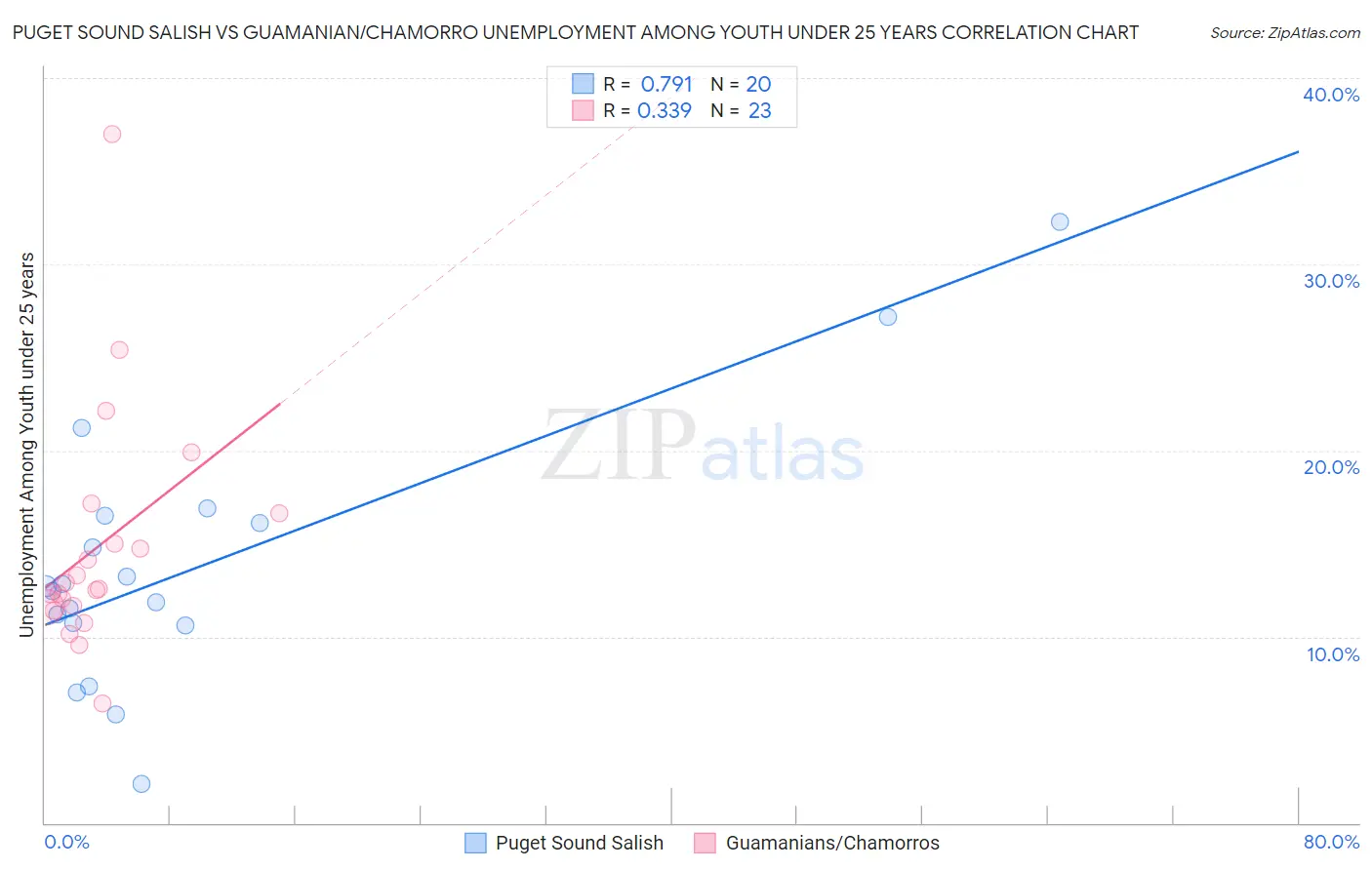 Puget Sound Salish vs Guamanian/Chamorro Unemployment Among Youth under 25 years Correlation Chart