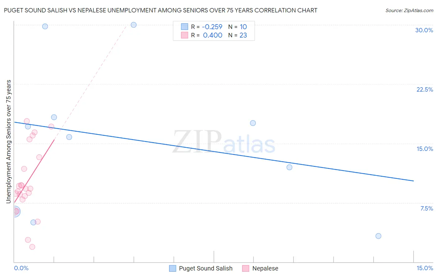 Puget Sound Salish vs Nepalese Unemployment Among Seniors over 75 years Correlation Chart
