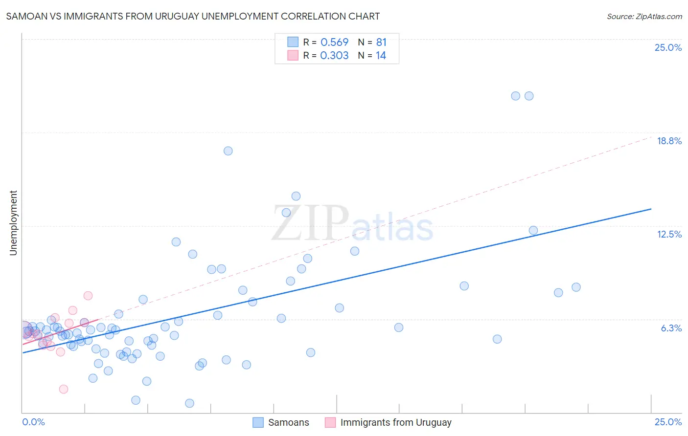 Samoan vs Immigrants from Uruguay Unemployment Correlation Chart