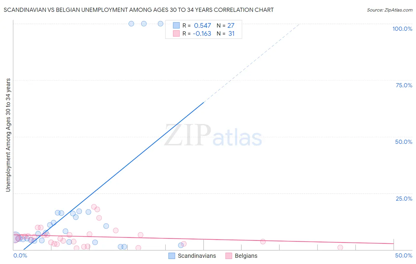 Scandinavian vs Belgian Unemployment Among Ages 30 to 34 years Correlation Chart