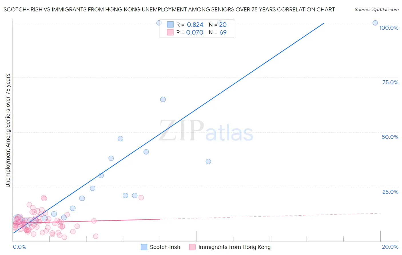 Scotch-Irish vs Immigrants from Hong Kong Unemployment Among Seniors over 75 years Correlation Chart