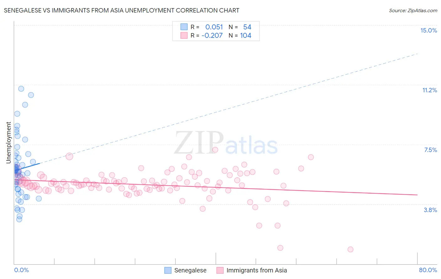 Senegalese vs Immigrants from Asia Unemployment Correlation Chart