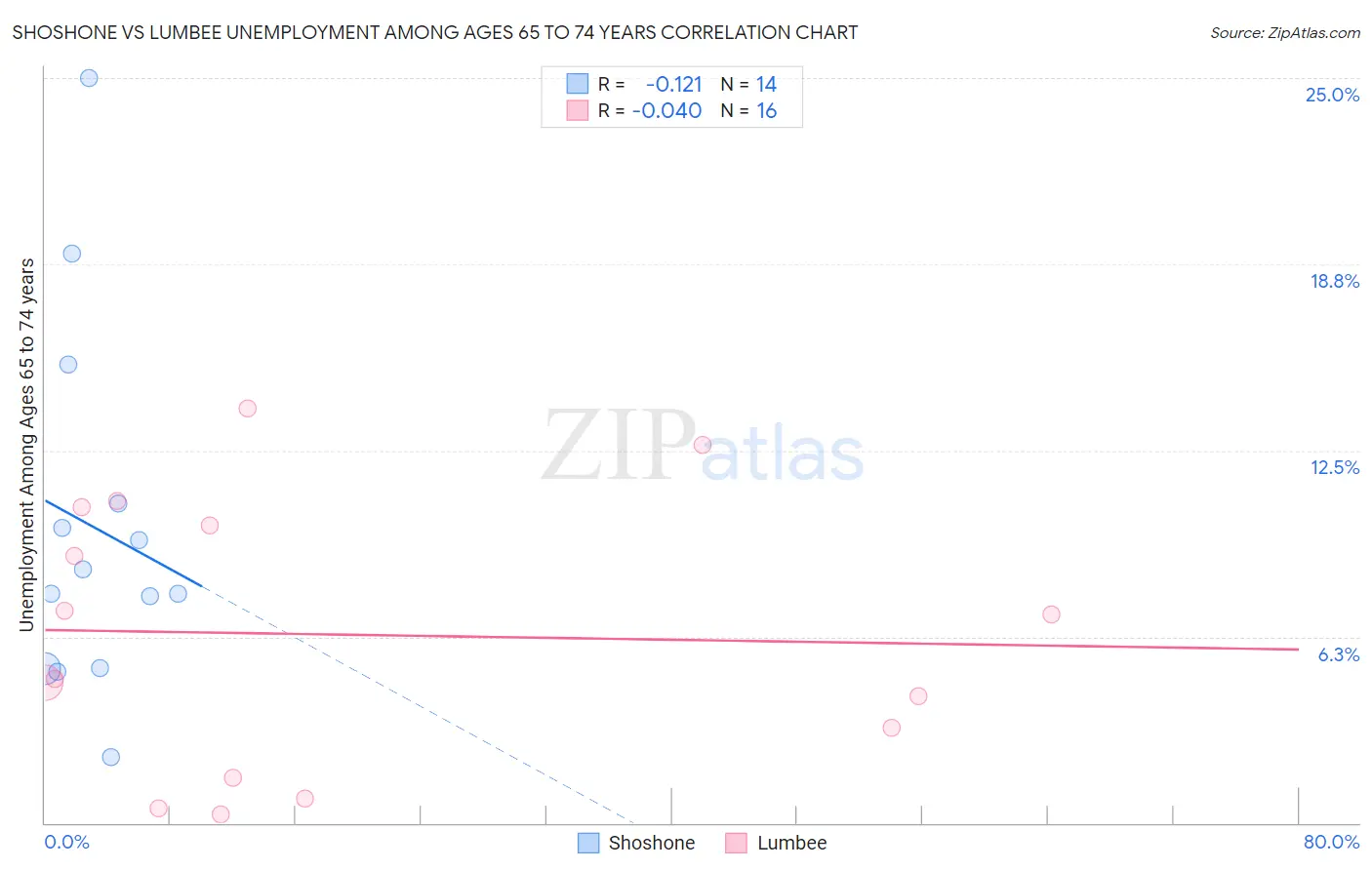 Shoshone vs Lumbee Unemployment Among Ages 65 to 74 years Correlation Chart