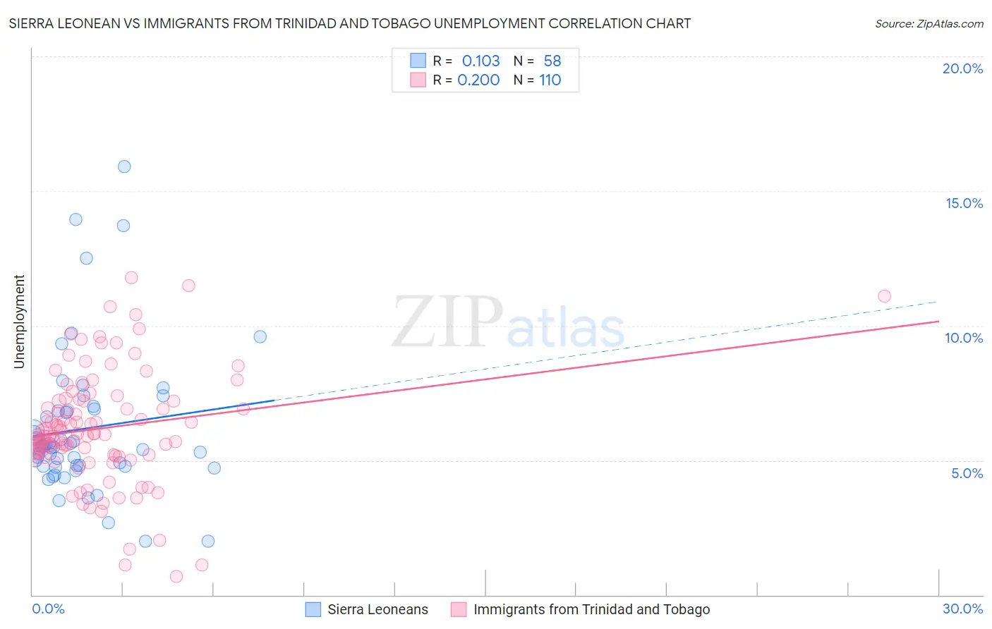 Sierra Leonean vs Immigrants from Trinidad and Tobago Unemployment Correlation Chart