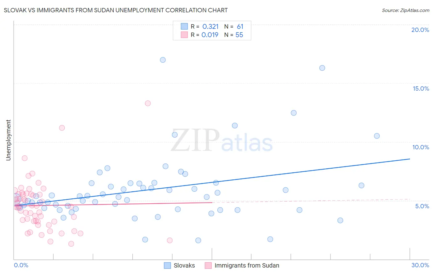 Slovak vs Immigrants from Sudan Unemployment Correlation Chart
