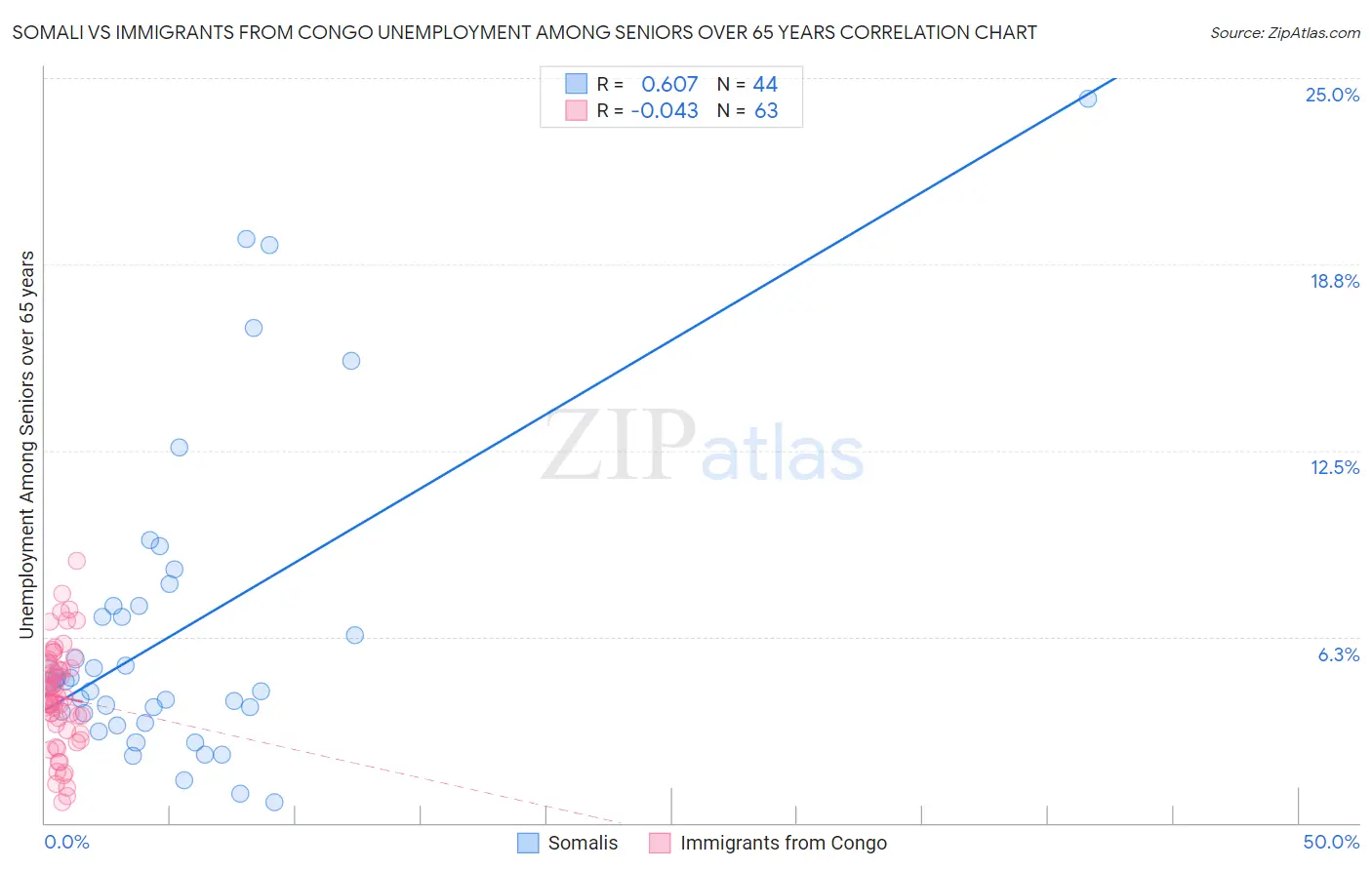 Somali vs Immigrants from Congo Unemployment Among Seniors over 65 years Correlation Chart