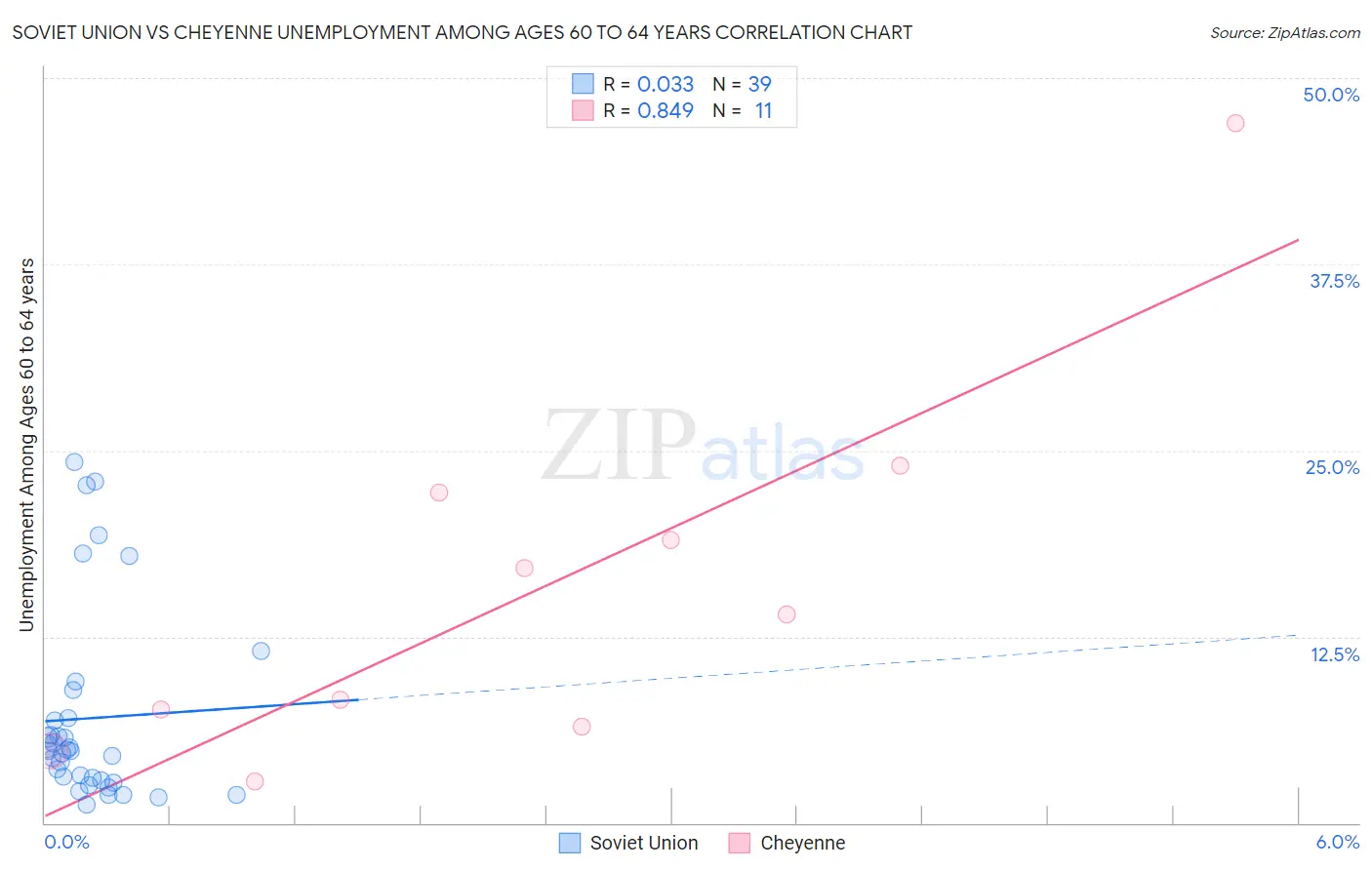 Soviet Union vs Cheyenne Unemployment Among Ages 60 to 64 years