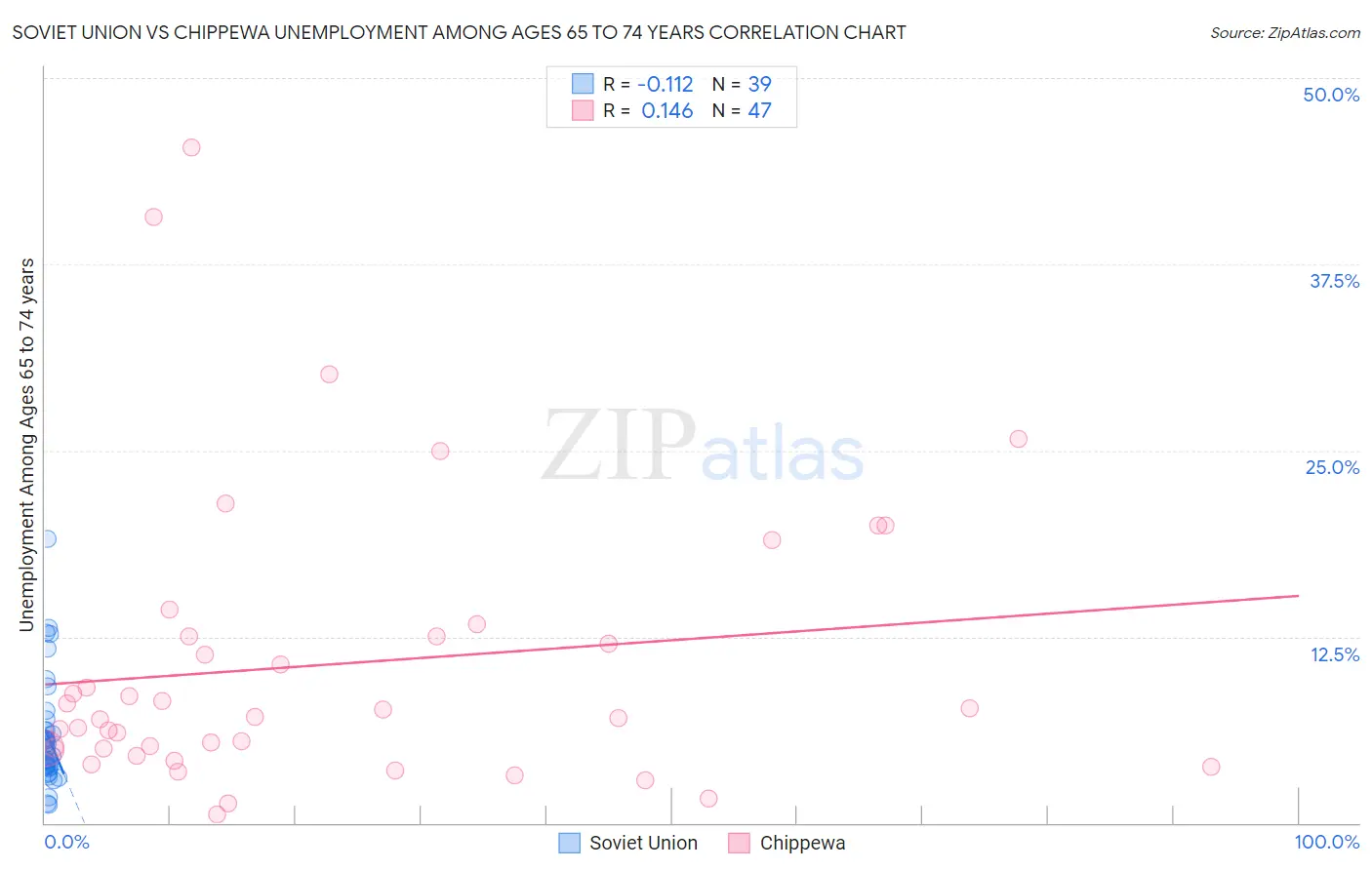 Soviet Union vs Chippewa Unemployment Among Ages 65 to 74 years