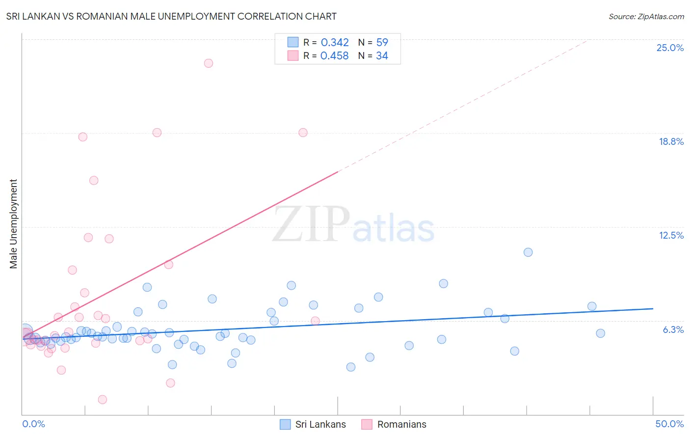 Sri Lankan vs Romanian Male Unemployment Correlation Chart