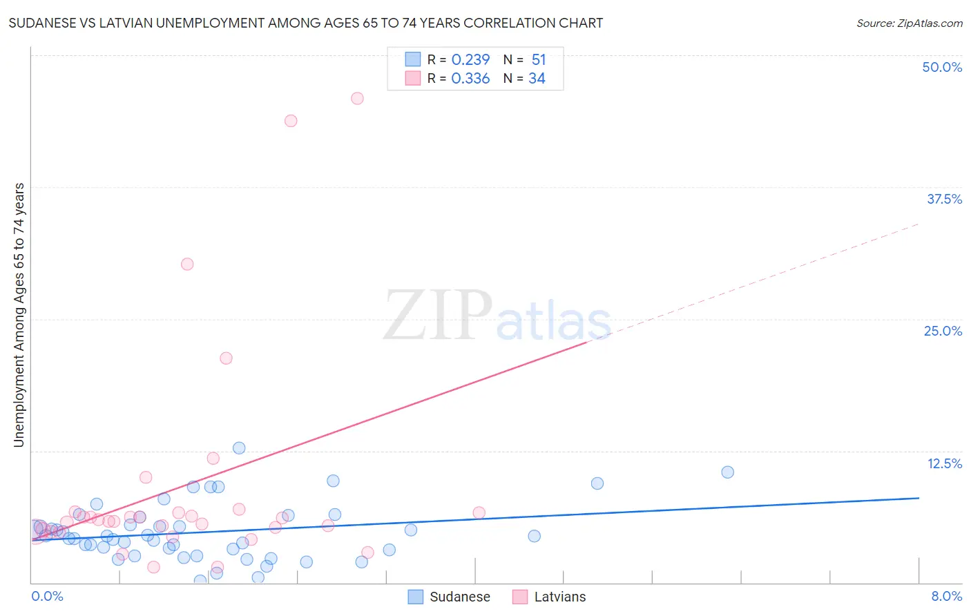 Sudanese vs Latvian Unemployment Among Ages 65 to 74 years Correlation Chart